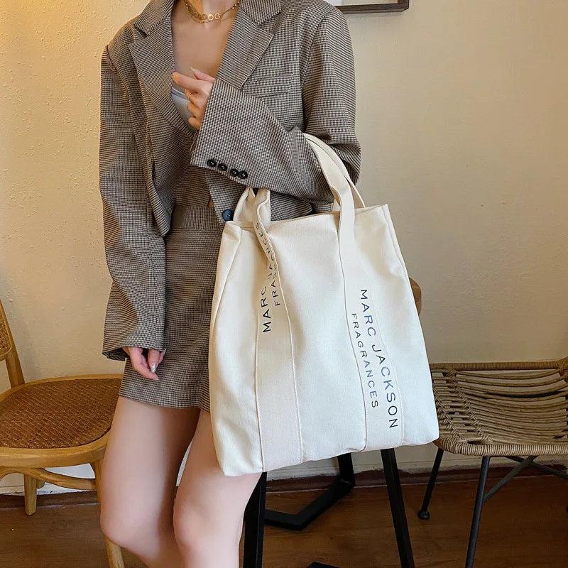 Canvas Shoulder Bag Letter Print Casual Handbag Large Capacity Tote Bag