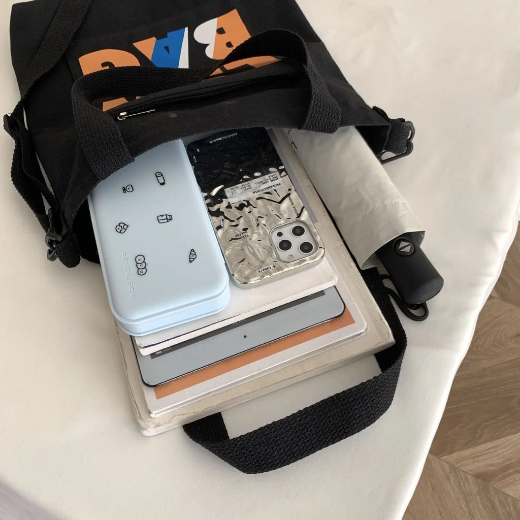 Canvas Shoulder Bag Men Women Cross Body Bag with Pendant