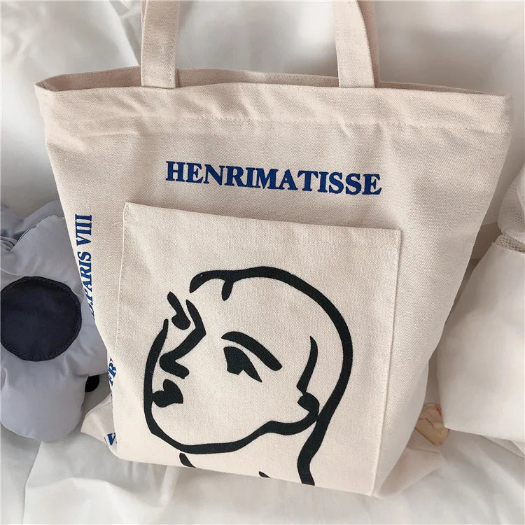 Canvas Shoulder Bag Tote Handbag Large Capacity Shopping Bag for Girls