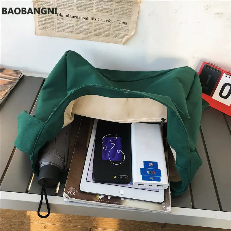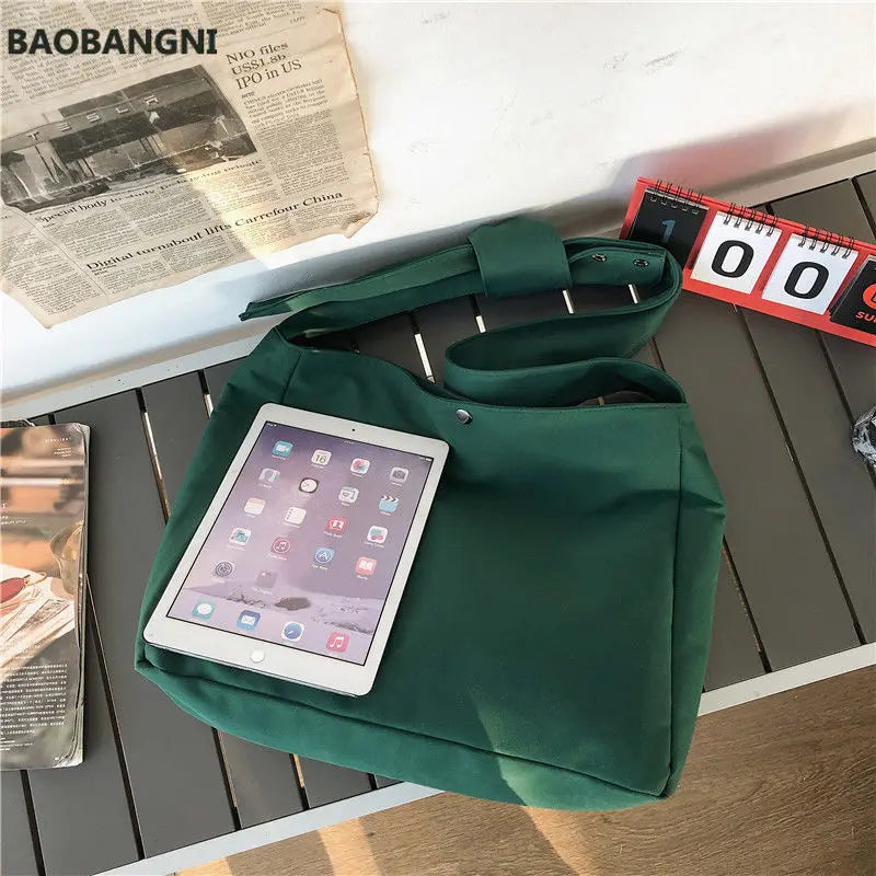 Canvas Shoulder Bag Wide Strap Cross-body Tote