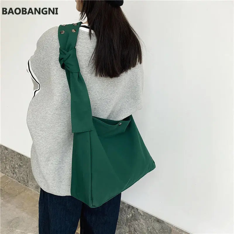 This preppy canvas shoulder bag with wide strap features a tie closure and hasp for secure storage. It offers a big capacity, making it perfect for students and daily use. The vintage design is suitable for both men and women.