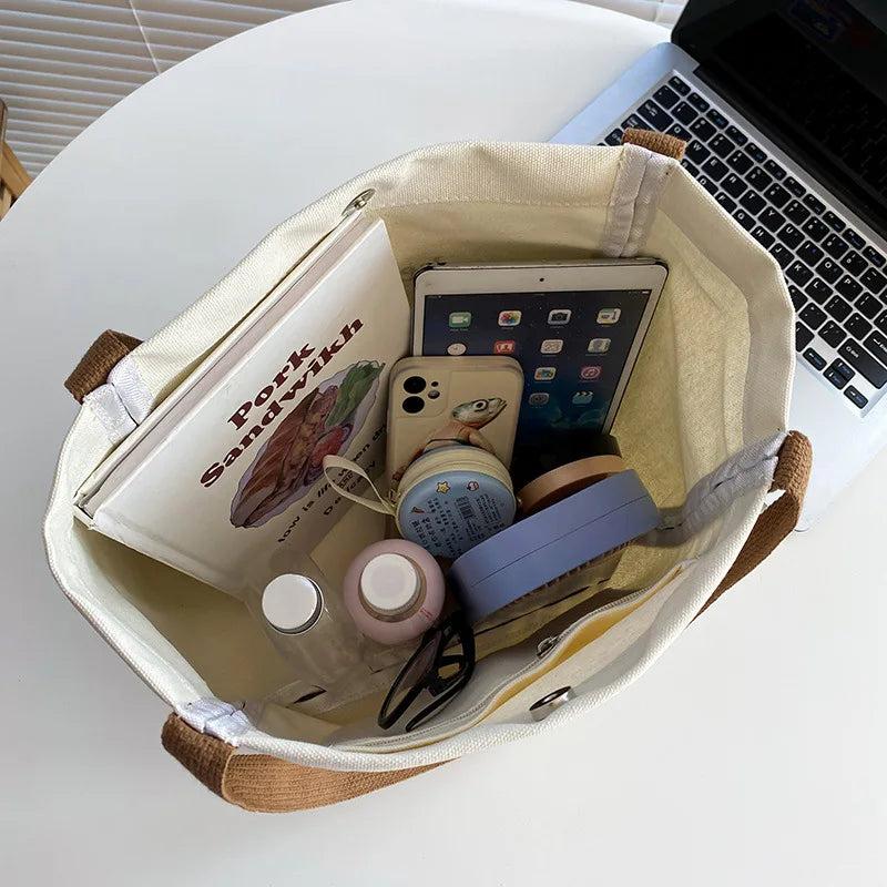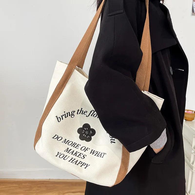 This canvas shoulder bag is designed for women who love casual style. It features a fun cartoon print that adds a touch of playfulness to your outfit.