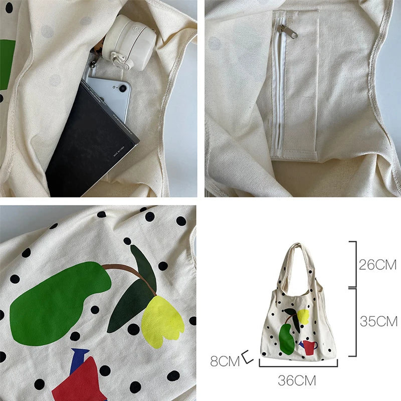 Canvas Shoulder Bag Women's Polka Dot Handbag Tote