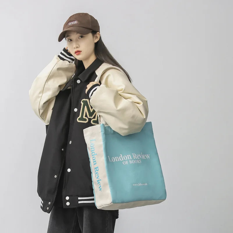 This canvas tote bag is perfect for commuting, shopping, or as a student handbag. It features a retro design and offers ample space.