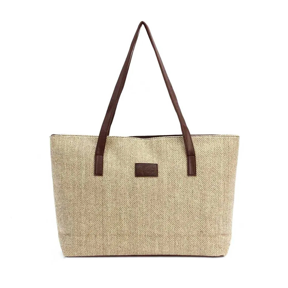 This women's handbag is made of high-quality canvas material with appliques design. It offers a large capacity, making it perfect for shopping and everyday use.