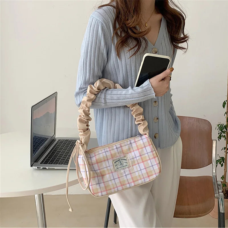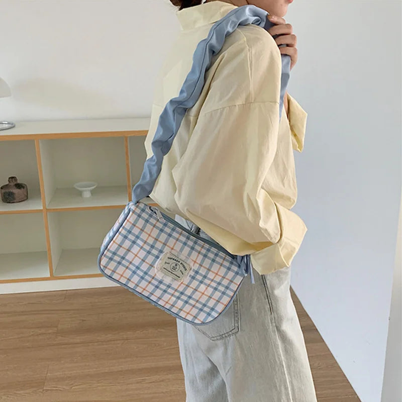 Stay stylish with this plaid printing ruffles square bag, perfect for spring and summer casual wear.