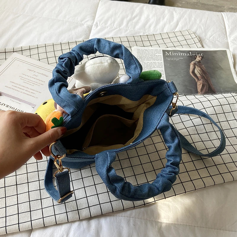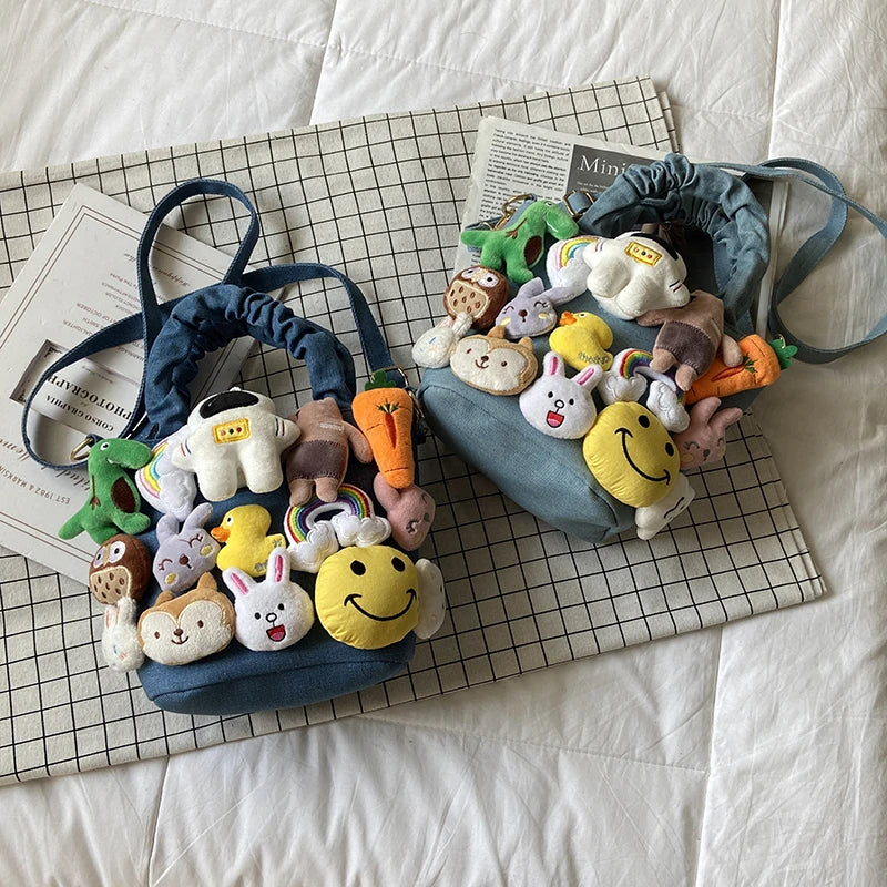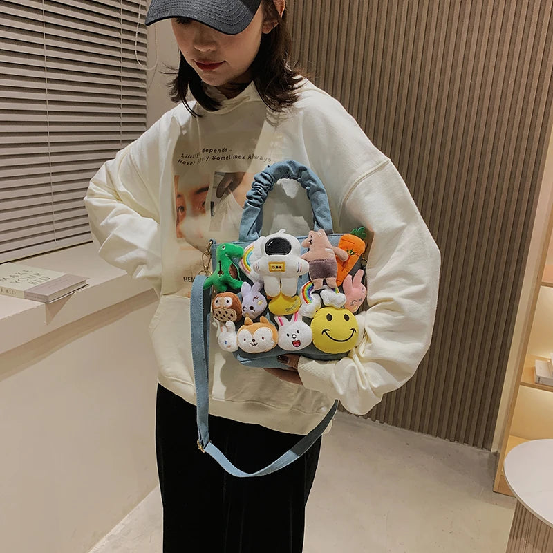 Canvas Shoulder Bags For Women Handbags Doll Decoration Crossbody Bag