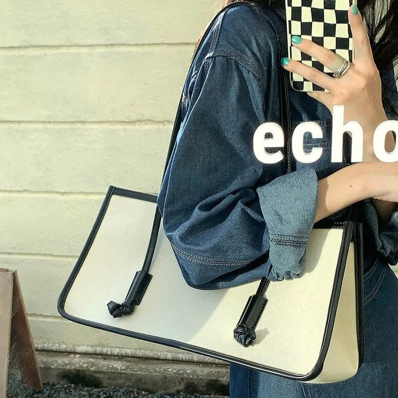Canvas Shoulder Bags Women Large Capacity Office Ladies Patchwork Handbags