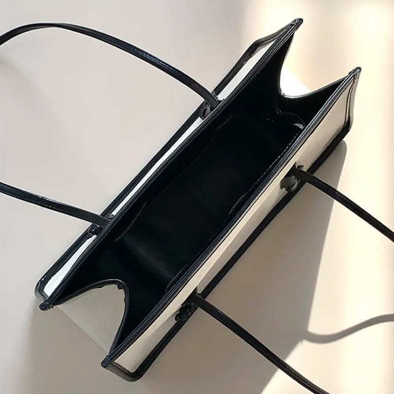 This stylish and practical canvas shoulder bag is perfect for office ladies with its large capacity and patchwork design. It's a must-have accessory for the modern professional.