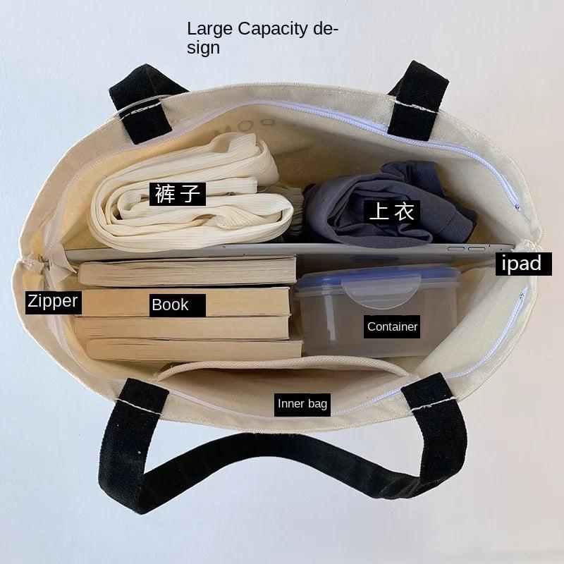 Canvas Shoulder Shopping Bag Daily School Cotton Fabric Tote Bag
