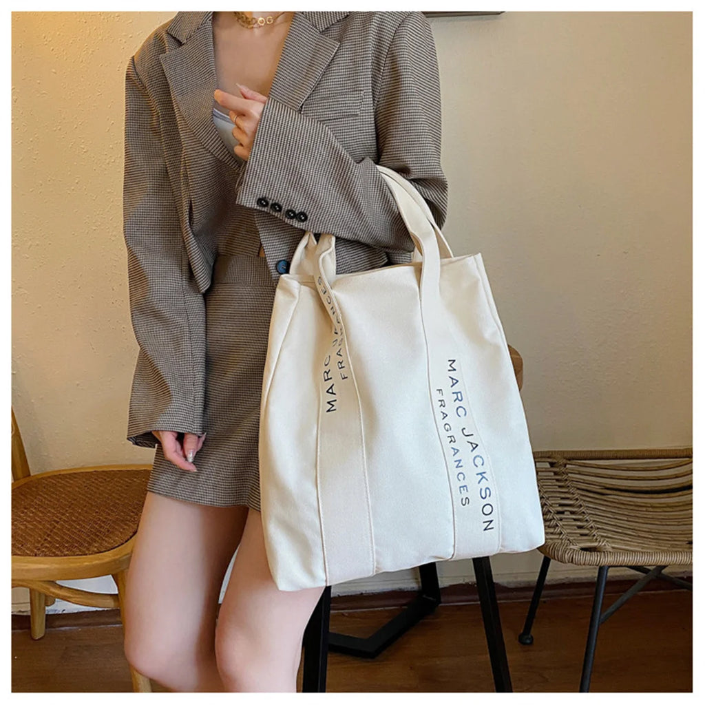 Canvas Shoulder Tote Bag Minimalist Style Large Women Reusable Purse