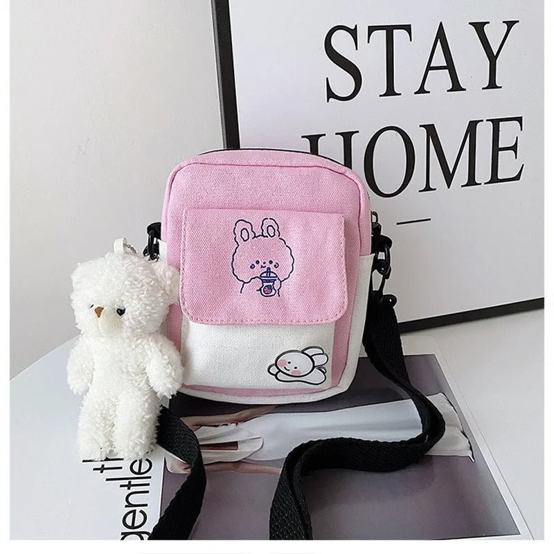 A stylish crossbody messenger bag made of durable canvas for girl students.