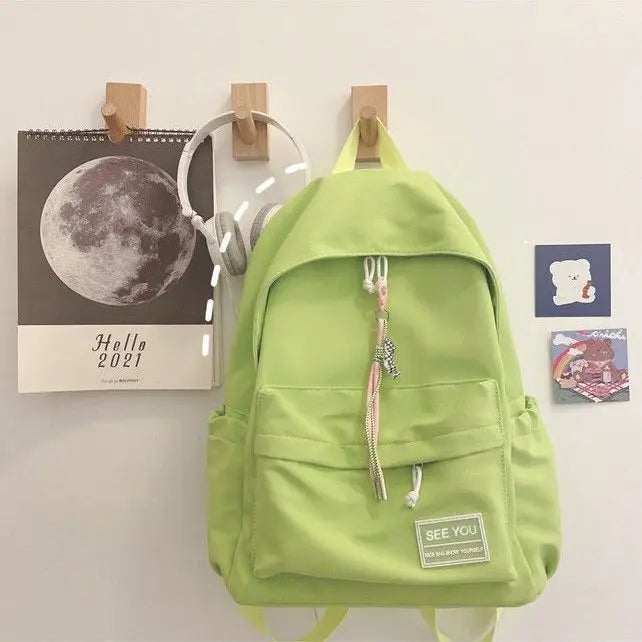 Description:This women's canvas backpack is perfect for spring and summer travels. It's ideal for students and teenagers, serving as a stylish schoolbag. Available in light orange, green, and blue colors.Features: Durable canvas construction for long-lasting use Sweet and stylish design suitable for teenage girls Spacious compartments for books, essentials, and...