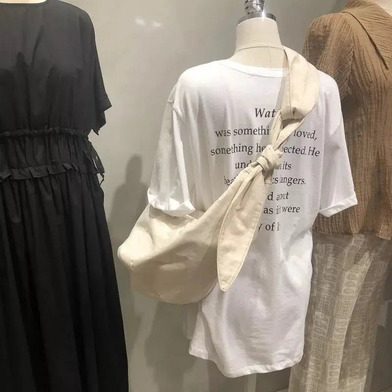 Canvas Tie Cross-body Shoulder Bag Women Solid Large Capacity Underarm Bag
