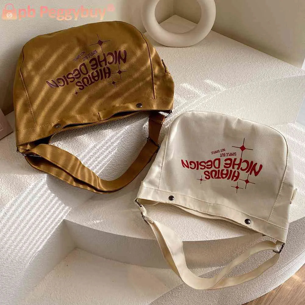 Canvas Top-handle Bag Large Capacity Women Messenger Letter Printed Casual