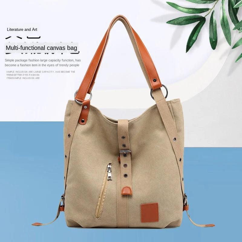 Canvas Tote Bag Casual Shoulder Bag School Bag Rucksack Convertible Handbags