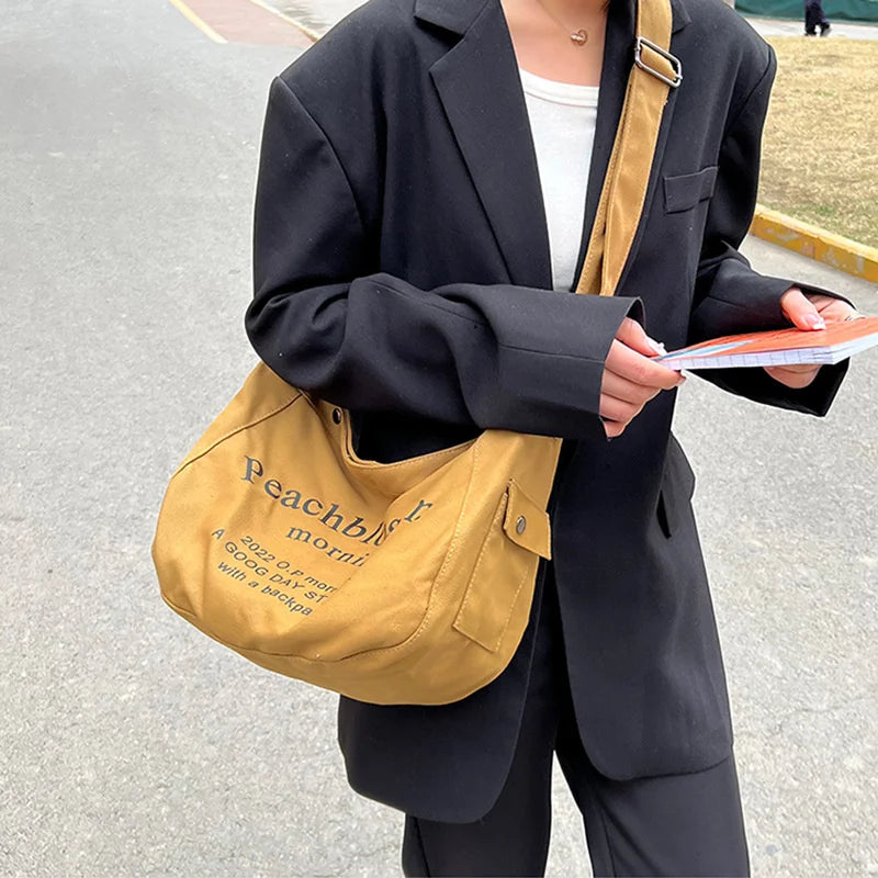 This canvas tote bag is perfect for women who need to carry a lot of items. It is spacious, durable, and stylish, making it a versatile accessory for everyday use.