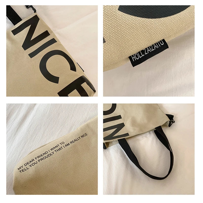 Canvas Tote Bag Letter Printing Shoulder Bags For Women