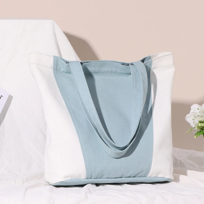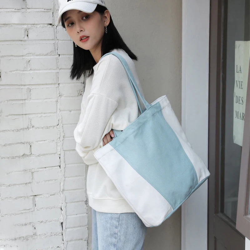 This canvas tote bag is perfect for women who need a stylish and practical shoulder bag. It features contrasting colors and a large capacity for all your essentials.