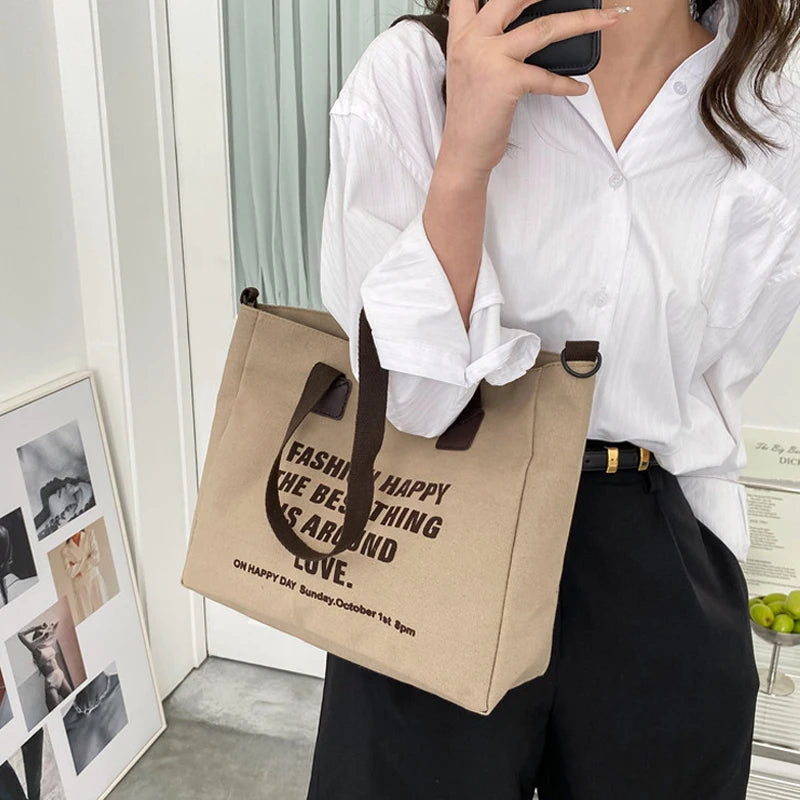 Canvas Tote Bag Women Shopper Shoulder Bag Large Capacity Crossbody Handbag
