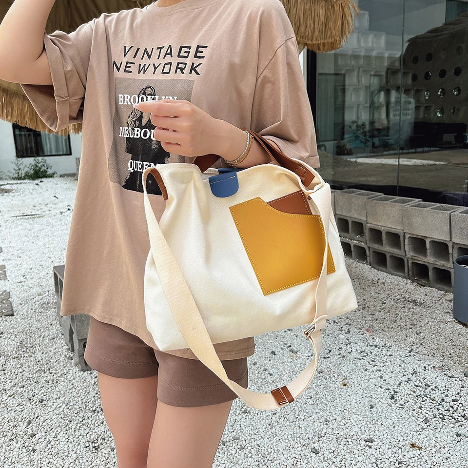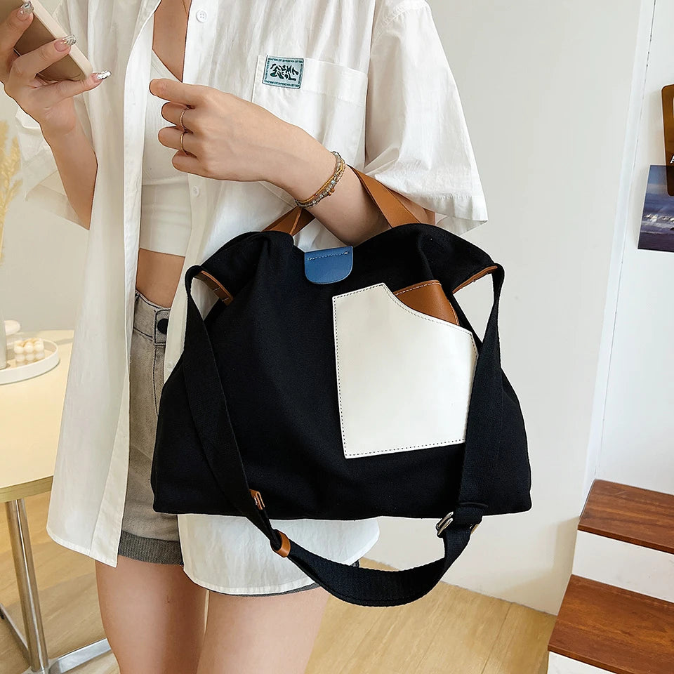 Canvas Tote Bag Women Shoulder Handbag Small Fresh Retro Casual Large-capacity