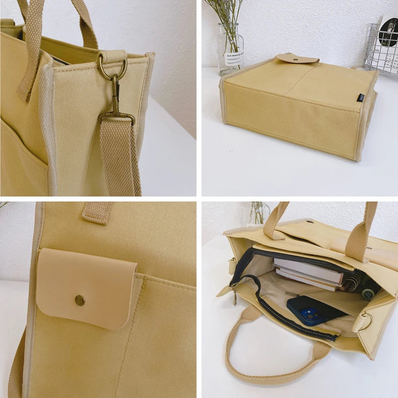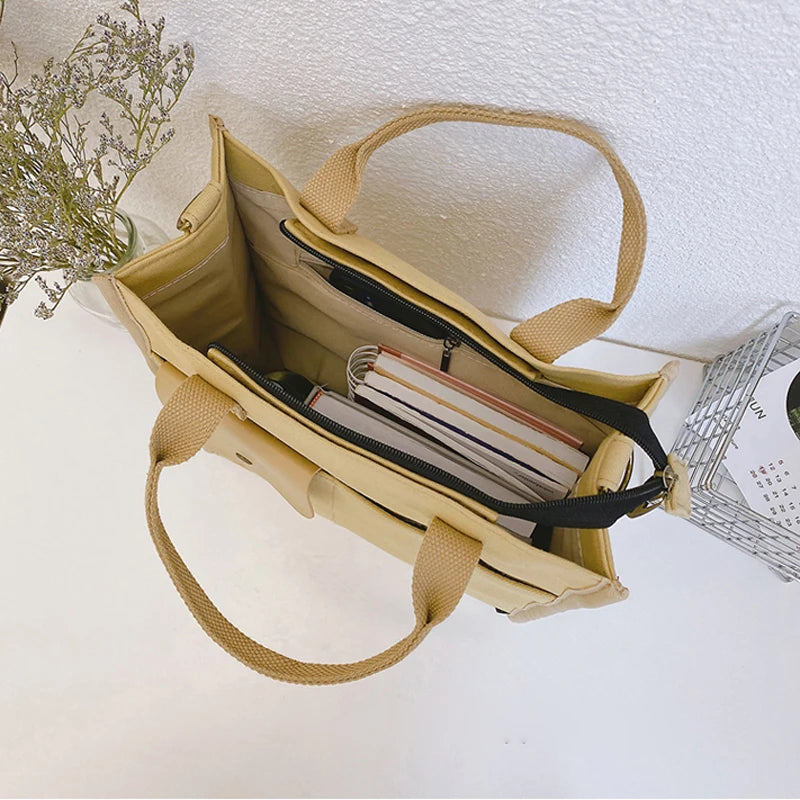 Canvas Tote Girl Casual Shopper Handbag Solid Schoolbag