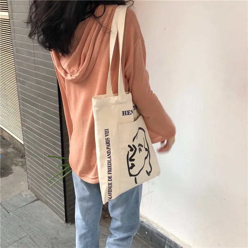 This versatile canvas handbag is perfect for school, work, travel, grocery shopping, and more. It features a spacious main compartment and an outer pocket for easy access to essentials. The casual design makes it a practical and stylish accessory for any occasion.