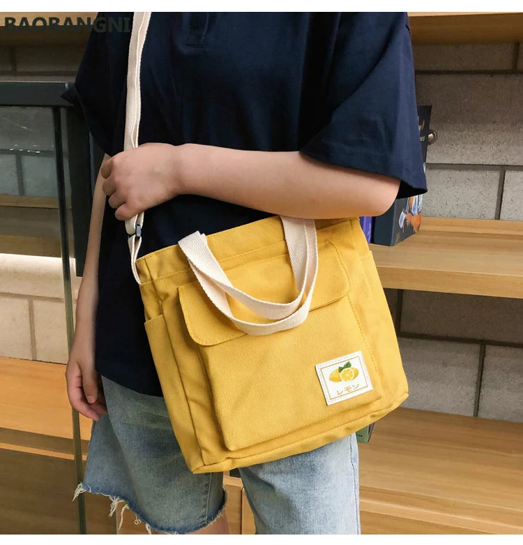 Canvas Tote Shoulder Bag Foldable Bucket Bag Girl