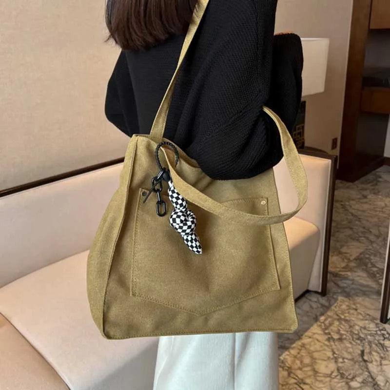 Stay stylish with this casual solid female shopper bag made of durable canvas. It offers ample space and a comfortable design for all-day use.