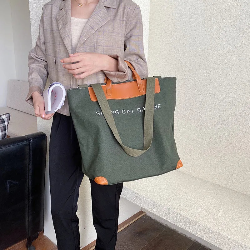Canvas Totes Satchels Zipper Casual Handbags Large Capacity Shoulder Bags
