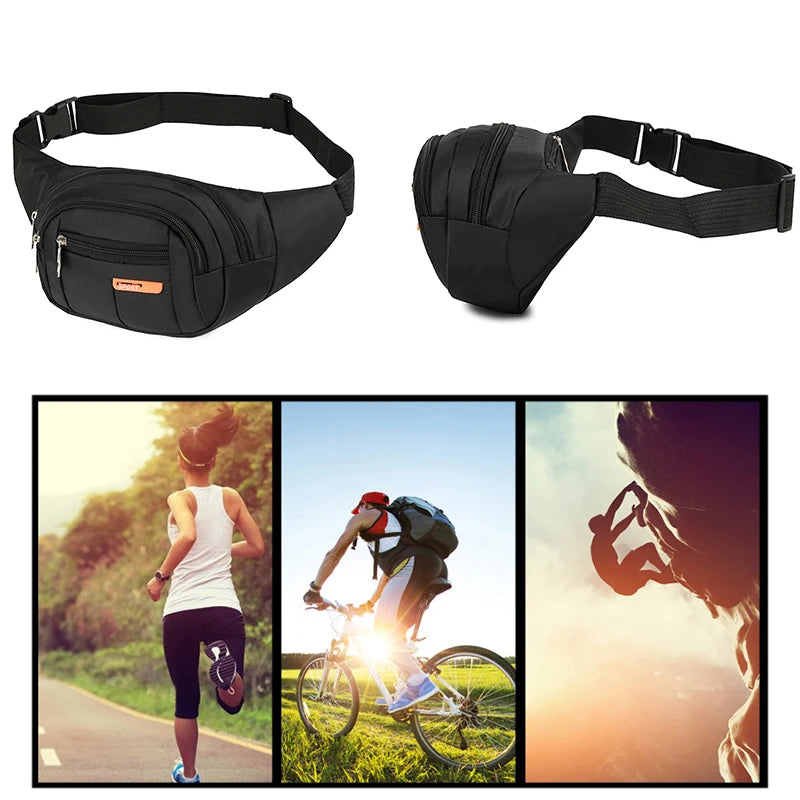 This unisex outdoor sports casual waist bag is perfect for men and women. Made of durable canvas, it is ideal for travel and outdoor activities.