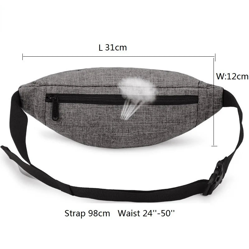 This waist bag is ideal for carrying money, phone, and other essentials. Made of durable canvas material, perfect for everyday use.
