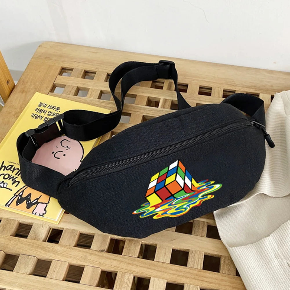 Stay stylish and hands-free with this canvas waist bag featuring a 3D print design. Perfect for youth, gym, sports, running, and cycling activities.