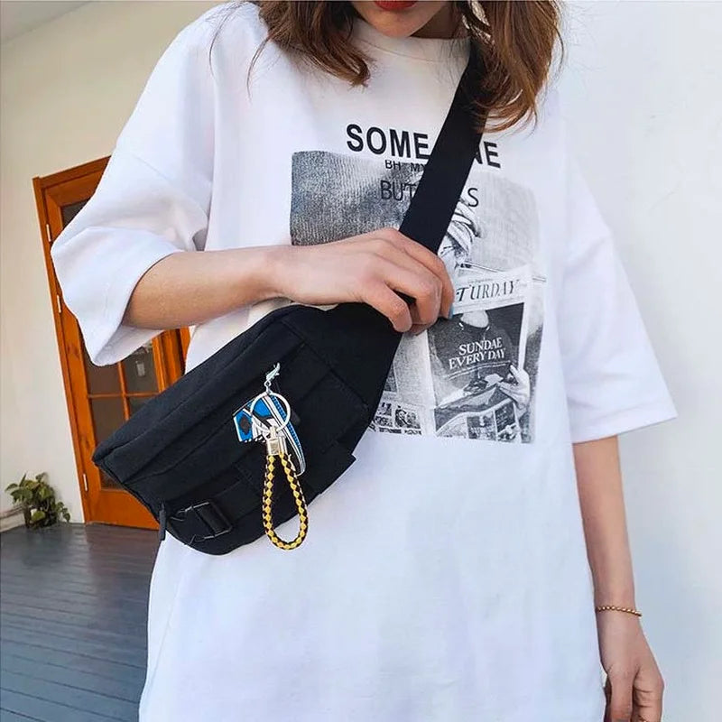 Canvas Waist Pack Crossbody Bag Harajuku Retro Leisure Fanny Pack Hip-pop