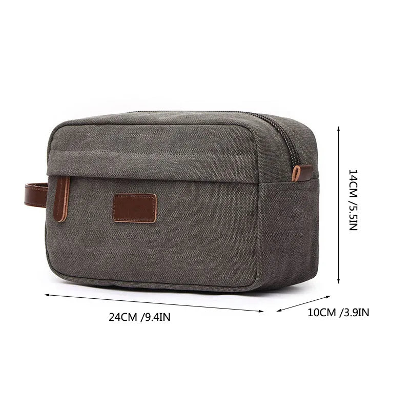 This travel cosmetic bag is made of high-quality canvas and designed to be portable and waterproof. Keep your toiletries organized while on the go.