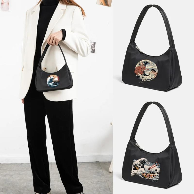 This canvas shoulder bag is perfect for women on-the-go, featuring a trendy waves design. It is versatile and can be used to carry various items such as mobile phones, keys, makeup, and more.
