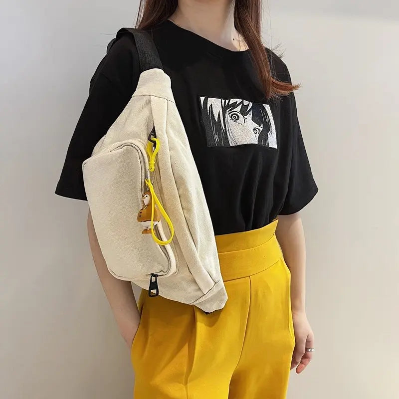 Canvas Women Chest Bag Large Capacity Anti-Theft Crossbody Bag