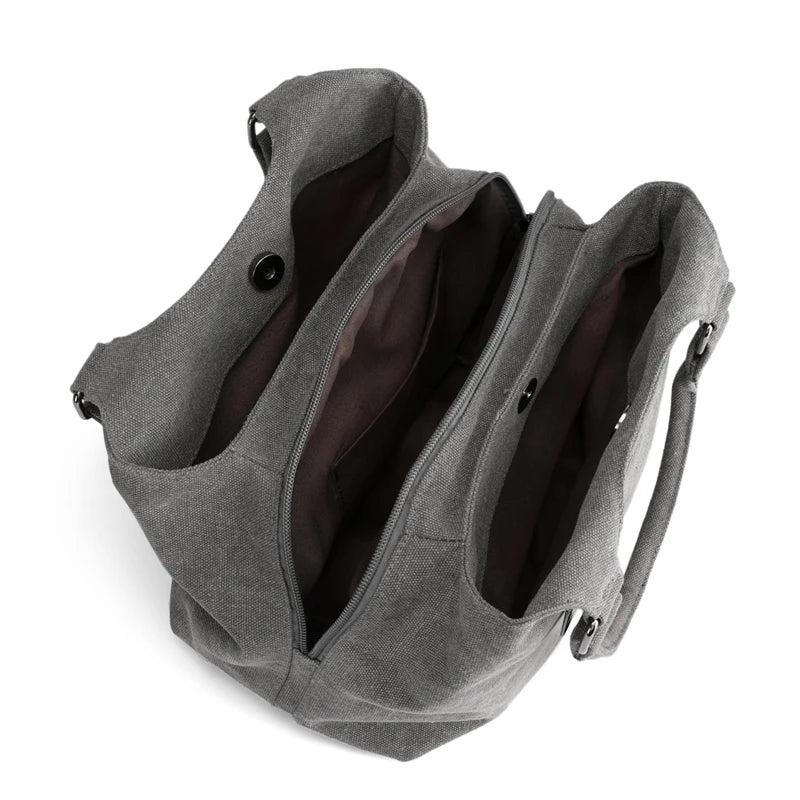 Canvas Women Shoulder Bag Multi-layer Pockets Casual Tote Shopping Hobos