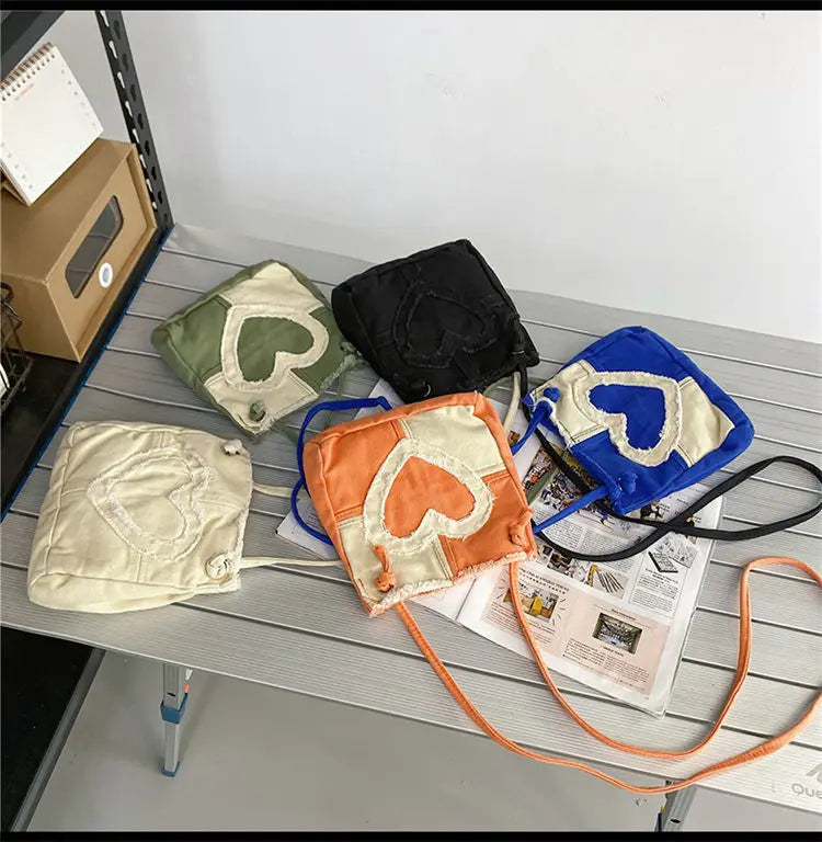 Canvas Women Shoulder Messenger Bag Heart Plaid Ladies Crossbody Bags