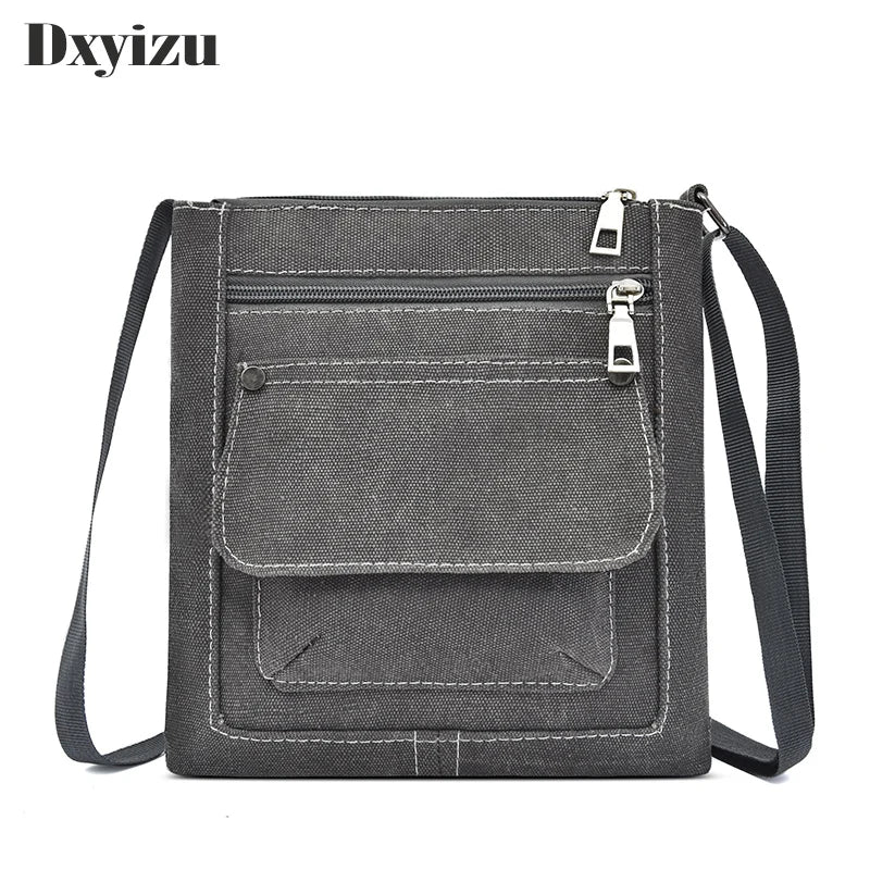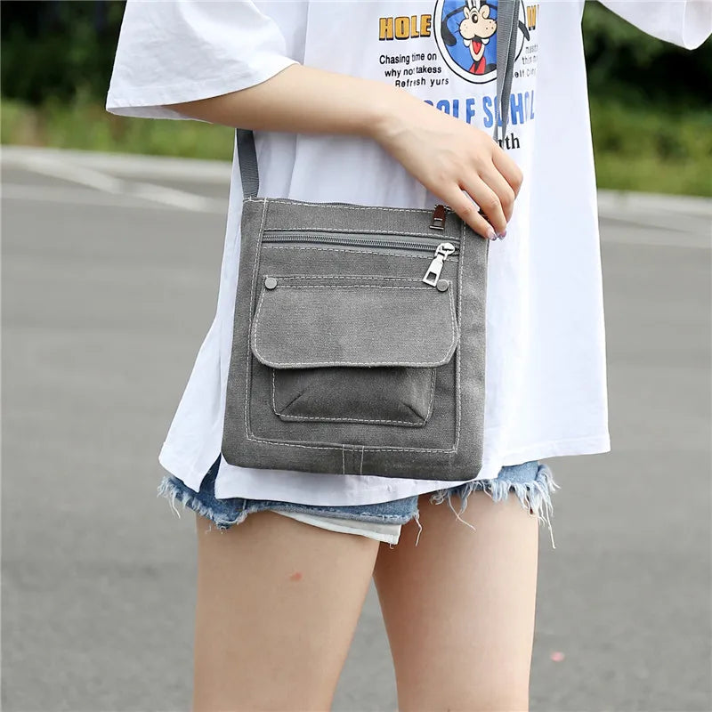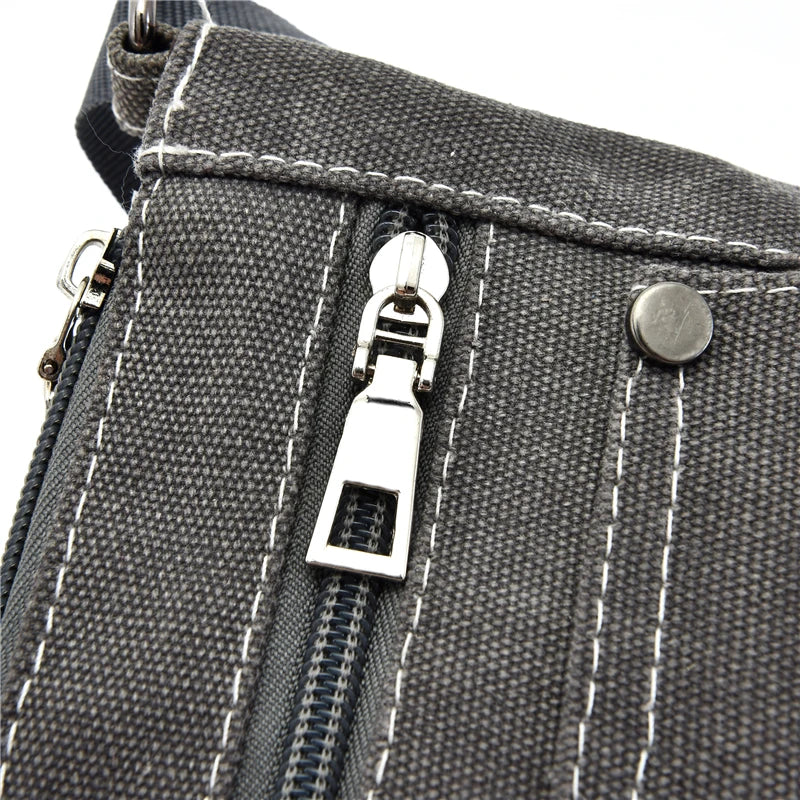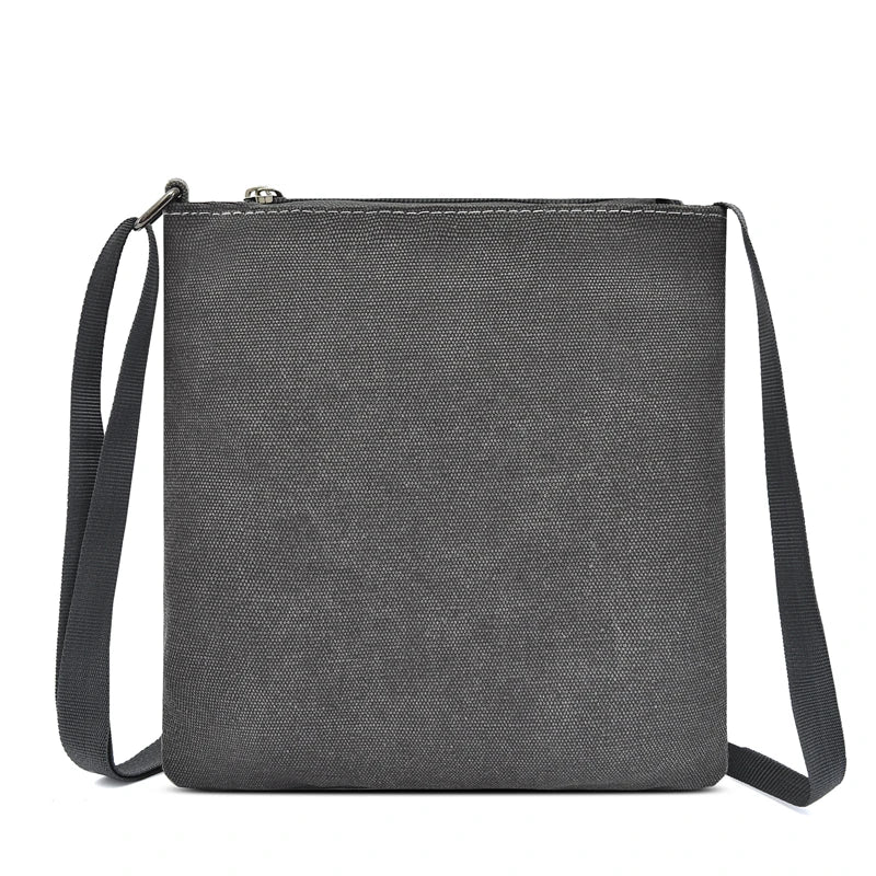 This canvas cross-body bag is perfect for casual travel and everyday use. It features a single strap design and a solid zipper closure.