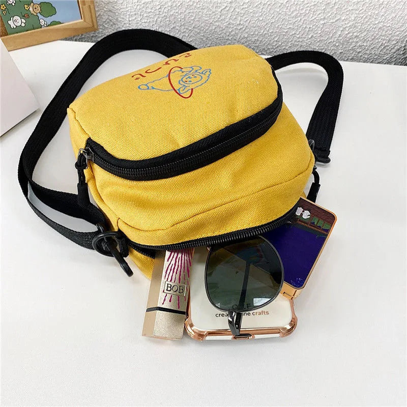 This crossbody bag is perfect for girls and students, made from durable canvas. It's great for everyday use.