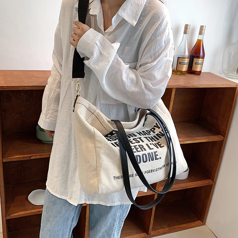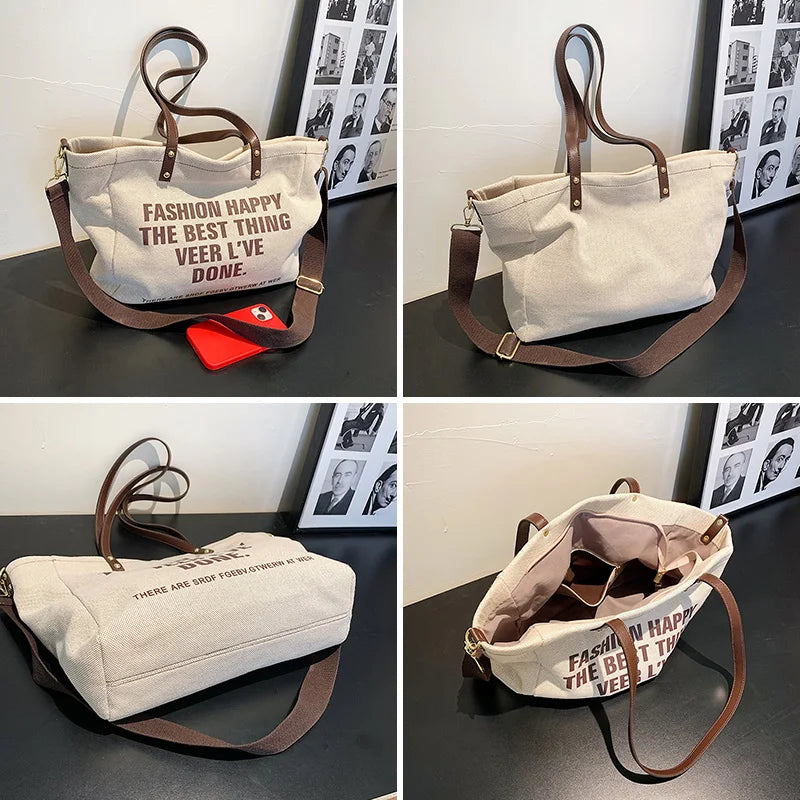 Canvas Women's Shoulder Bag Casual Travel Tote School Bag Large Capacity