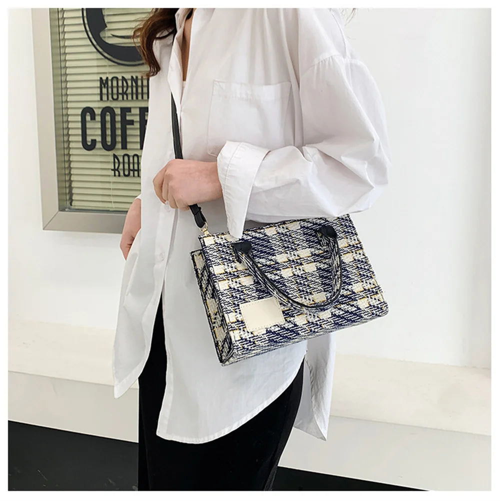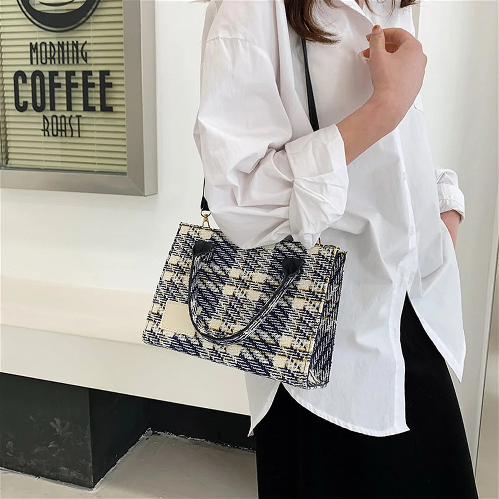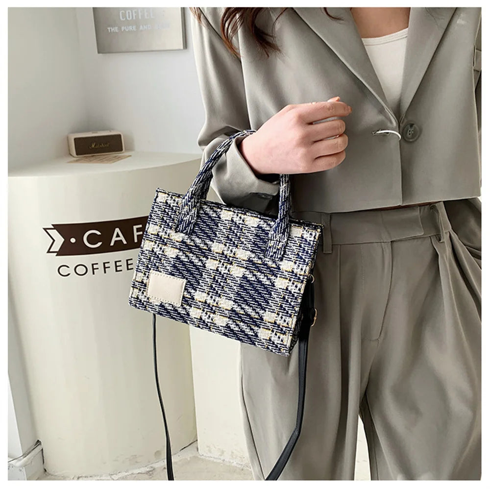 Canvas Women's Shoulder Bag Crossbody Small Square Plaid Handbag
