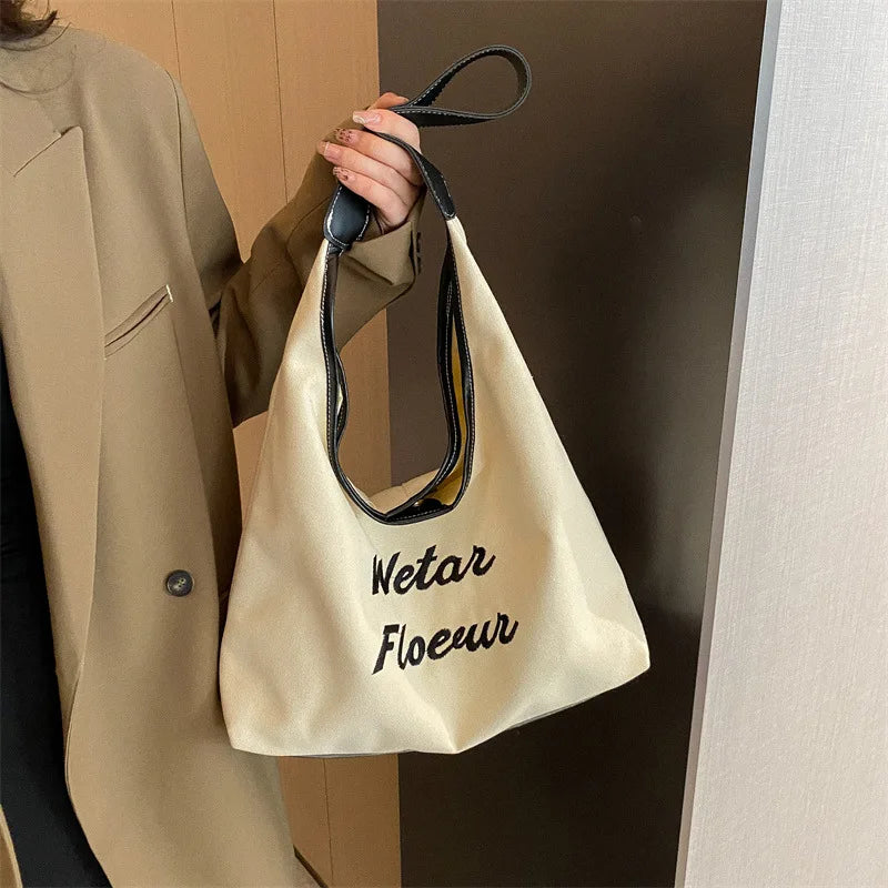 Stay stylish with this canvas shoulder bag featuring a letter print design. Perfect for everyday use, this crossbody bag offers both fashion and functionality.