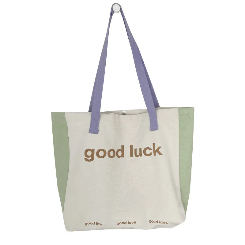 This canvas tote bag for women features a stylish letter print design and offers a large capacity for your essentials. Perfect for everyday use or shopping.