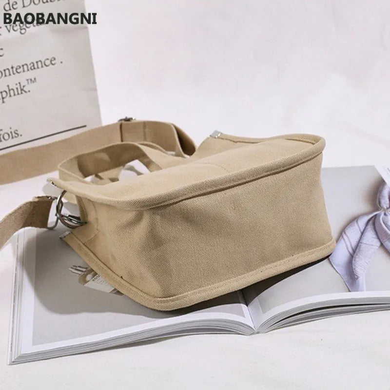 This women's shoulder bag is made of high-quality cotton canvas, featuring a zipper closure. It is perfect for casual outings and everyday use.