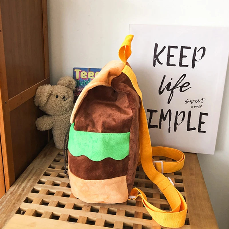 Canvas/Plush Hamburger Backpack for Women