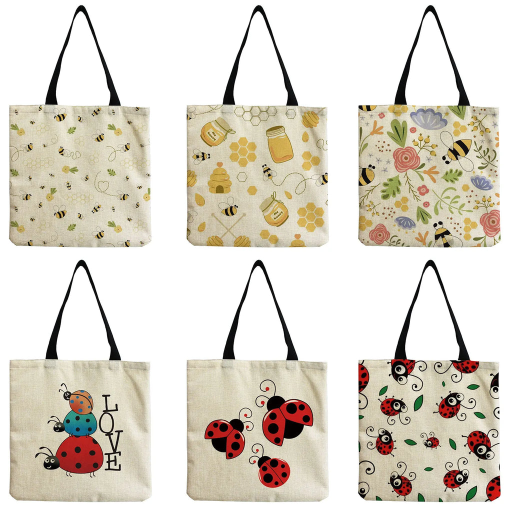 Cartoon Animal Bee Insect Women Shoulder Bag Eco Friendly Tote Handbag