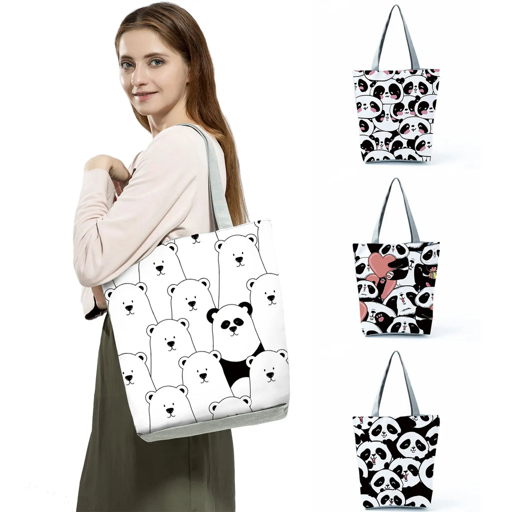 Cartoon Animal Foldable Tote Bag Women Large Capacity Shopping Shoulder Bag