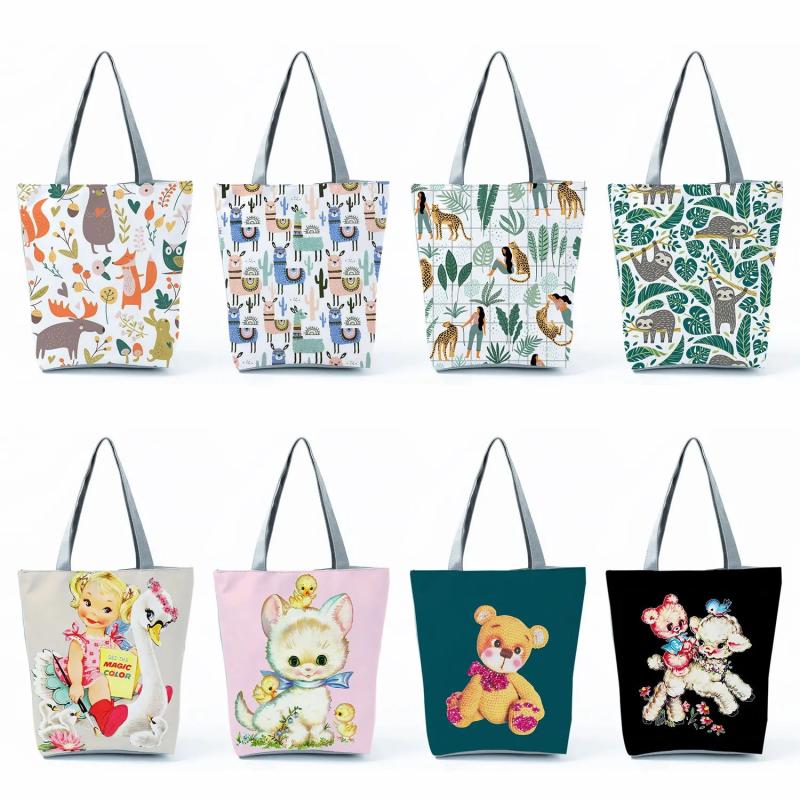 Cartoon Animal Print Handbags High Capacity Women Foldable Beach